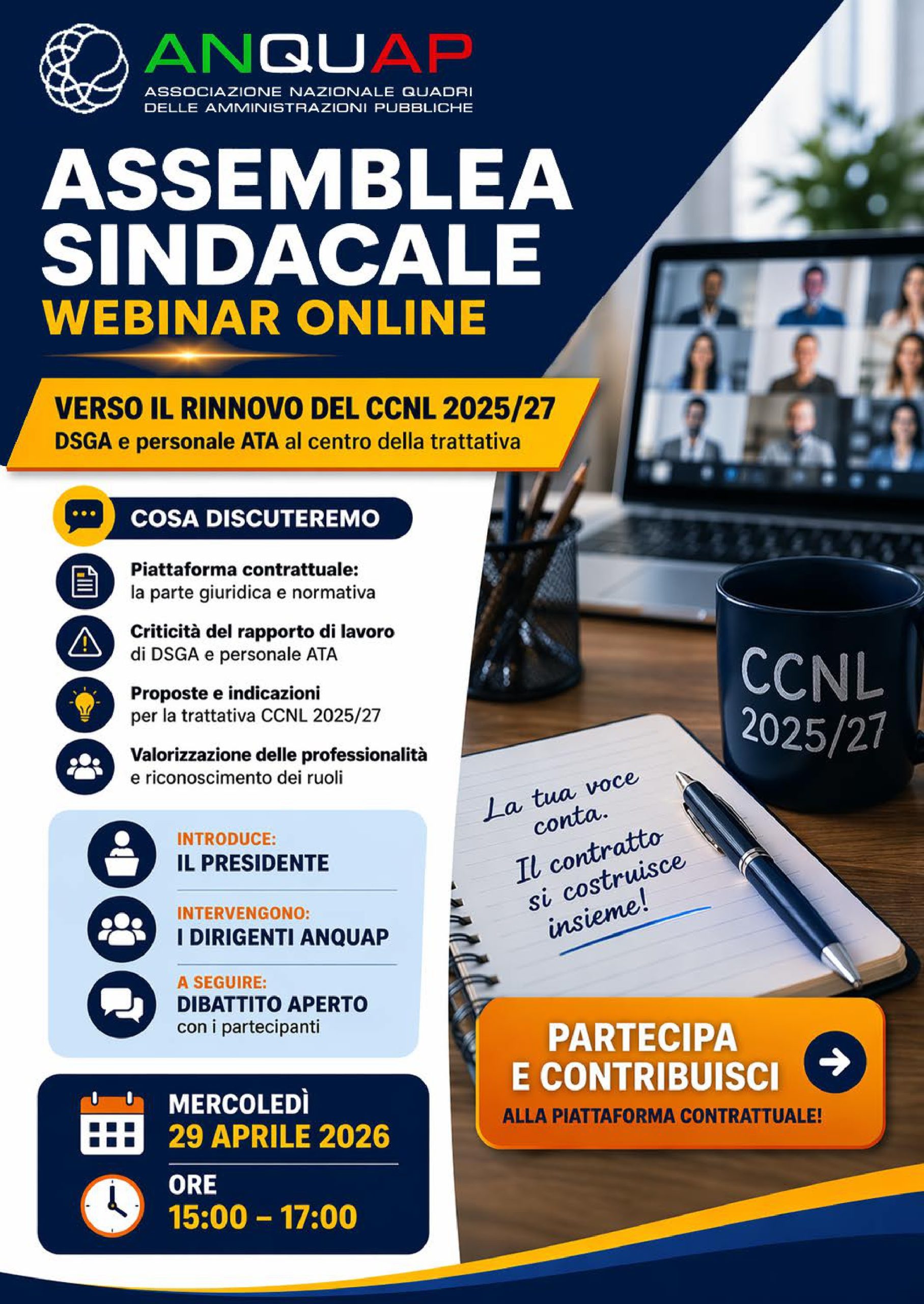 Assemblea sindacale online il giorno 29/04/2026 ore 15.00-17.00