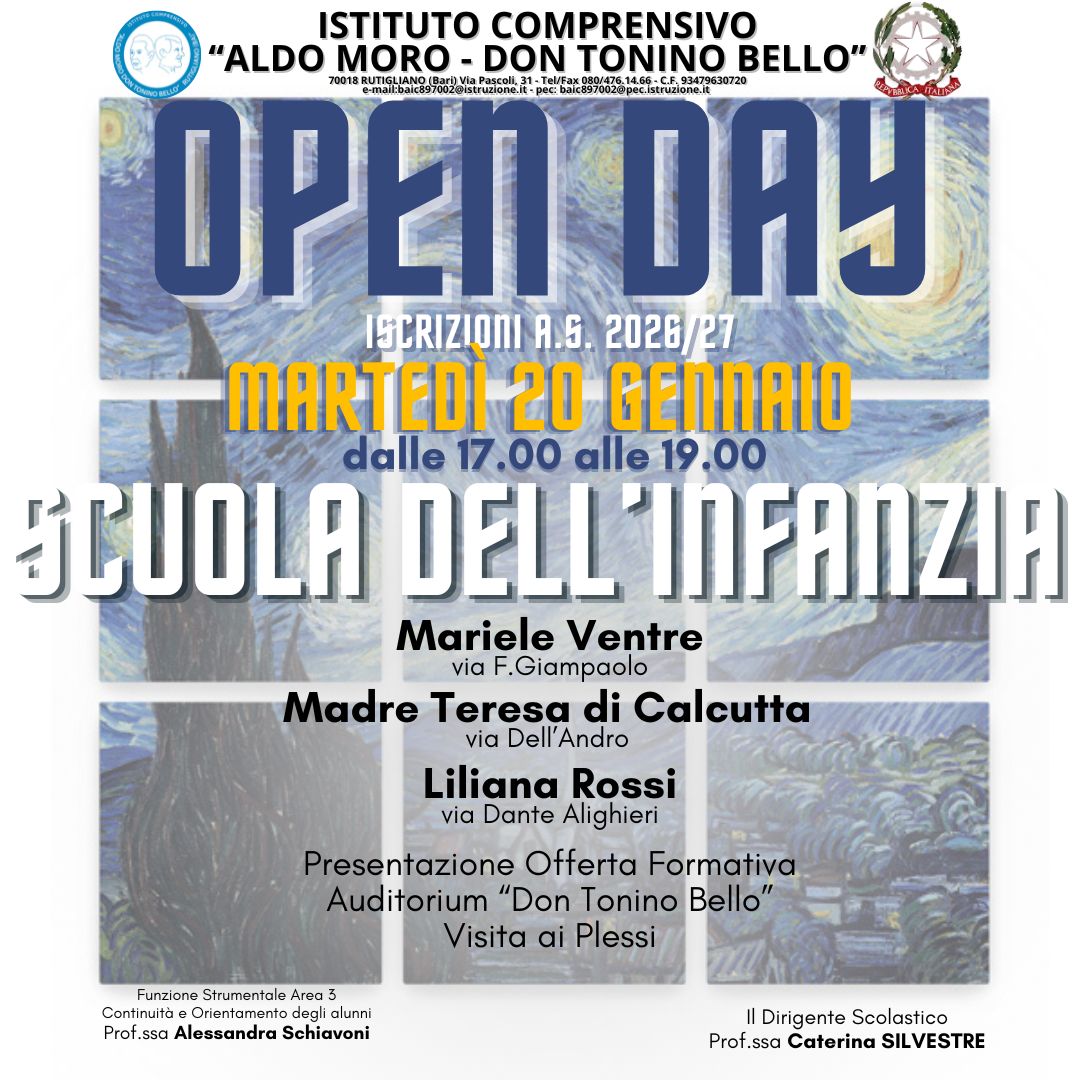 I genitori sono invitati a conoscere l’Offerta Formativa e le attività progettuali, visitare gli ambienti d’apprendimento e far partecipare i loro bambini cinquenni ai laboratori multidisciplinari.